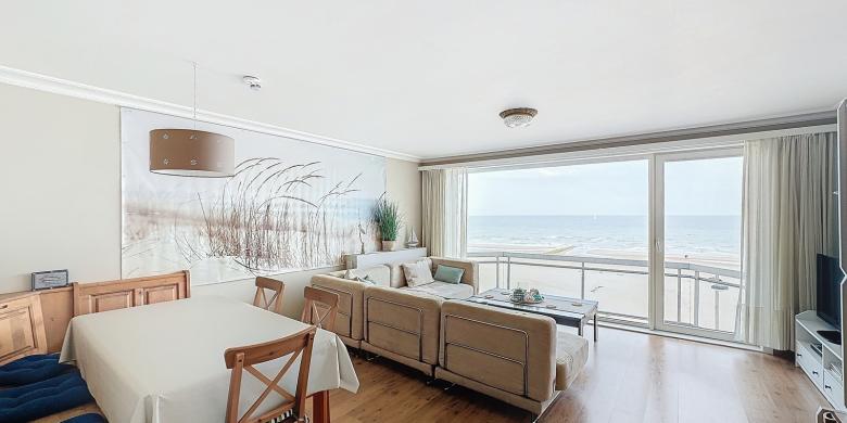 inkomhal met inbouwkast als opbergruimte - apart toilet - volledige nieuwe badkamer met bad/douche functie en een dubbele lavabo - 2 ruime en lichtrijke slaapkamers met toegang tot het terras - lichtrijke leefruimte met zicht op zee - keuken voorzien van alle nodige comfort (wasbak, kookfornuis, dampkap, voldoende kastruimte, vaatwas, frigo,..)
