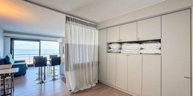 Ruime gemeubelde studio te huur in Middelkerke met zicht op zee.