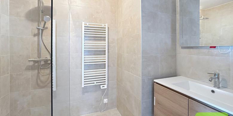 Inkomhal - slaapkamer 1 - slaapkamer 2 - badkamer met inloopdouche, lavabo en handoekenradiator - apart toilet - lichtrijke leefruimte met open keuken voorzien van kookfornuis, combi toestel (oven/microgolf), vaatwasmachine, spoelbak en frigo - aparte berging met aansluiting voor wasmachine en droogkast - terras