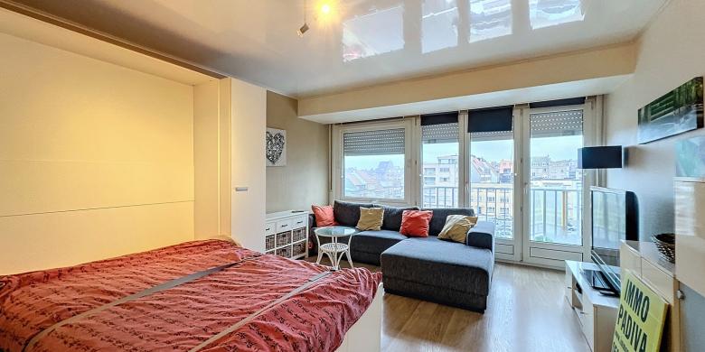 Zonnige studio voorzien van het nodige comfort en meubilair. Grote raampartijen, centrale ligging, rustige medebewoners.